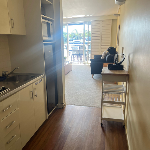 The apartment has ground water, along with an off-grid solar system. Water and solar included in the weekly are fees.